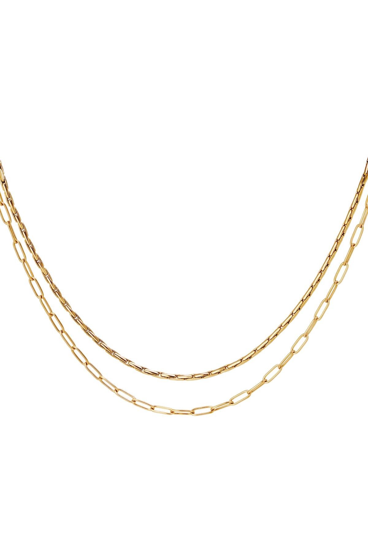 Dubbele ketting van roestvrij staal. Verkrijgbaar in zilver en goud